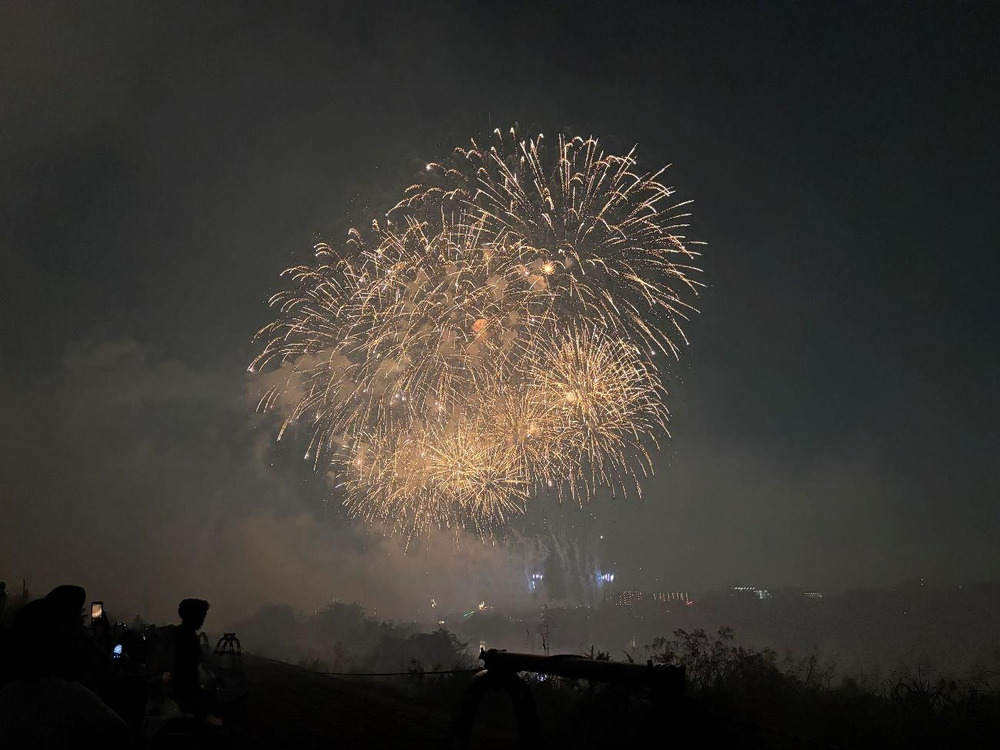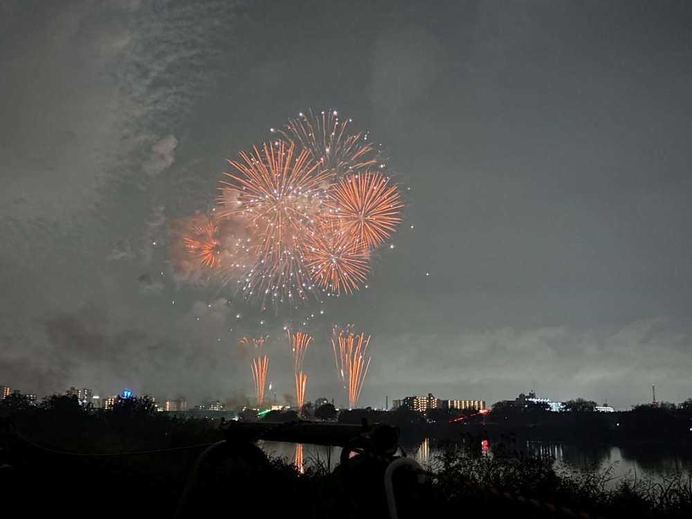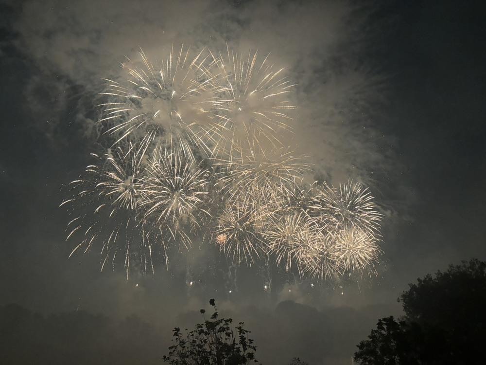 写真撮影のタイミングが難しく、実物よりも花火が見えにくくなってしまいましたが、この大きさや迫力は伝わりますでしょうか?