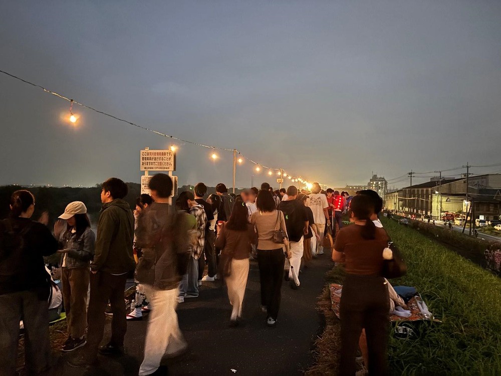全ての花火が打ち上がると、会場のあちらこちらから拍手が起こり、それぞれの花火大会を讃えあうようにスマホのライトを付けて、向こう岸に向かって振る人たちも多く見られました。