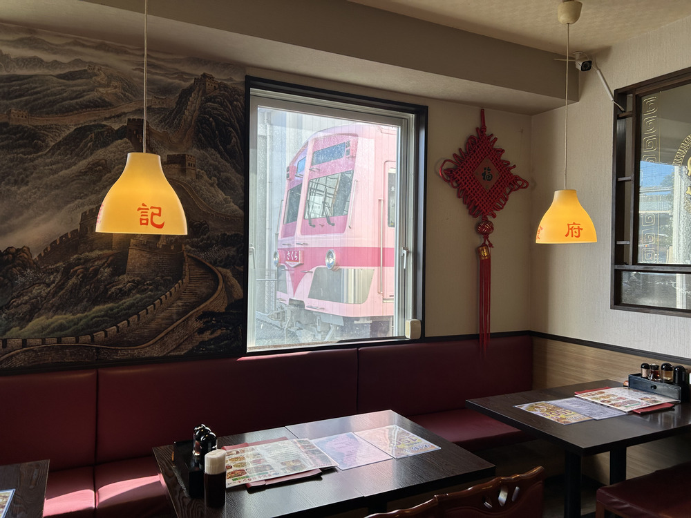 窓際の席では、かわいらしいピンクや黄色の車両が印象的なローカル電車・流鉄流山線が目の前を通過する様子も!電車好きのお子さんには特別な楽しみになりそうです。