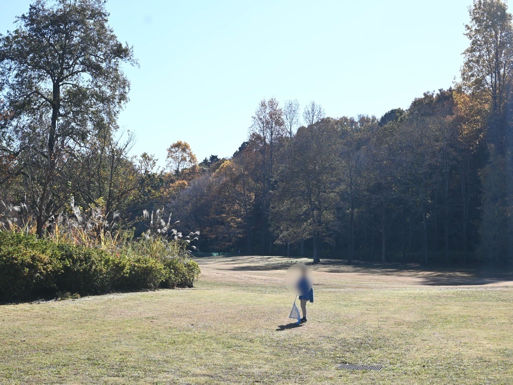 原っぱが広がるエリアで、緑も豊か。秋の終わりに見られる蝶や、バッタなどがたくさんいて、3時間くらい親子で虫探しに夢中になりました!