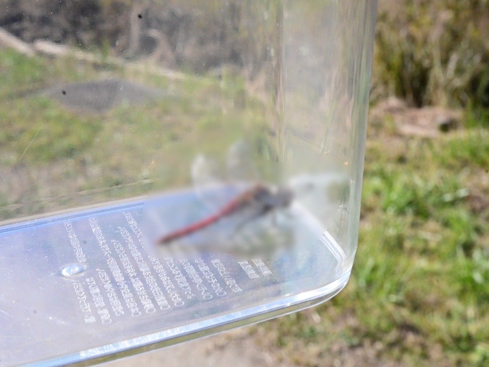 もうトンボは見られないと思っていましたが、まだチラホラ飛んでいました。この日見つけたのはアキアカネのオスです。色鮮やかでとてもキレイでした。