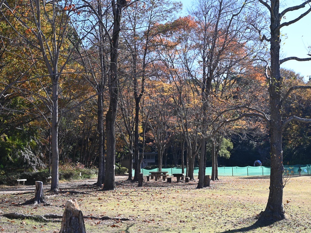 つどいの広場は、その名の通り広場になっていて、遊具がありません。自然豊かで紅葉がとてもキレイでした。