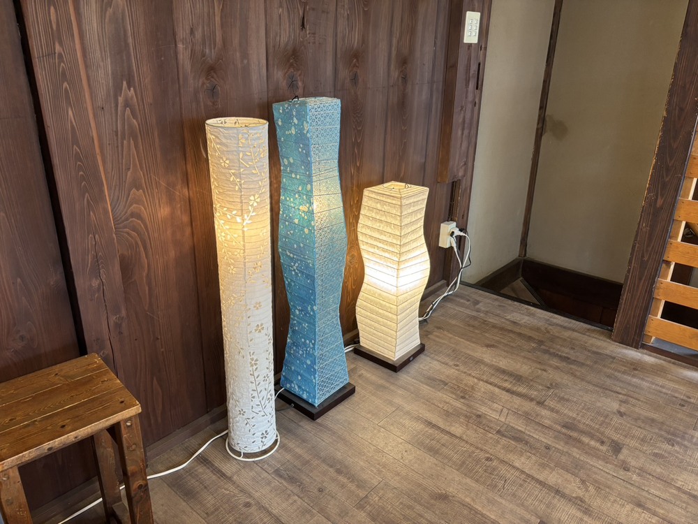 店内に飾られている照明器具はちょっと大きいな?という方には、美濃和紙を使った小さめの足もと灯なども販売しており、見ているだけでもワクワクします。