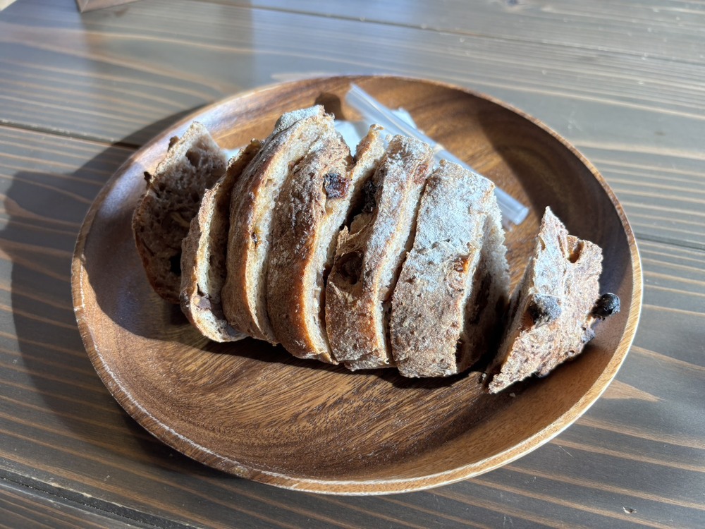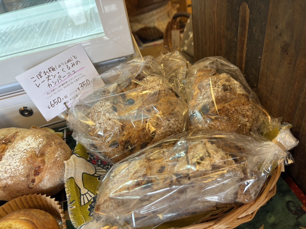 本日、お邪魔した際にはまだパンがいくつか残っていたので、その中から「こぼれ梅とレーズン・くるみのカンパーニュ」をいただくことにしました。