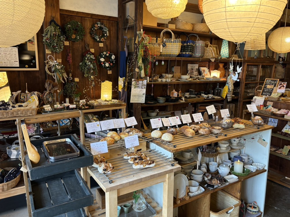 築80年を超える乾物屋だった建物をリノベーションしたお店で、照明器具や手作り雑貨、自家製天然酵母パンを販売しています。