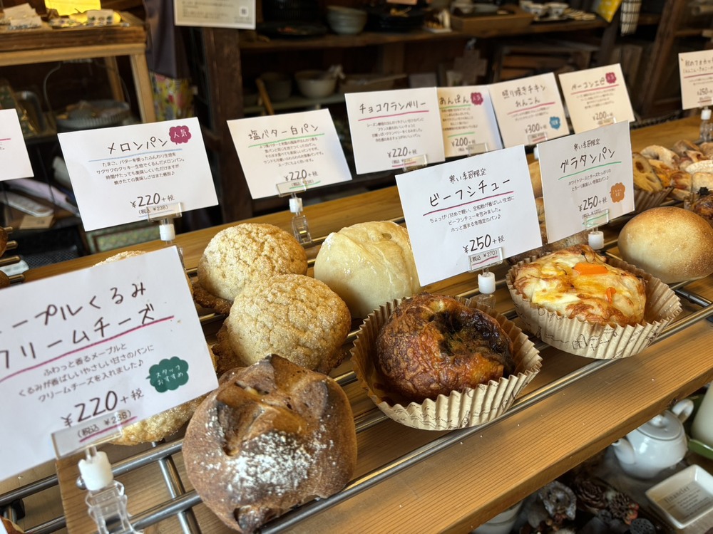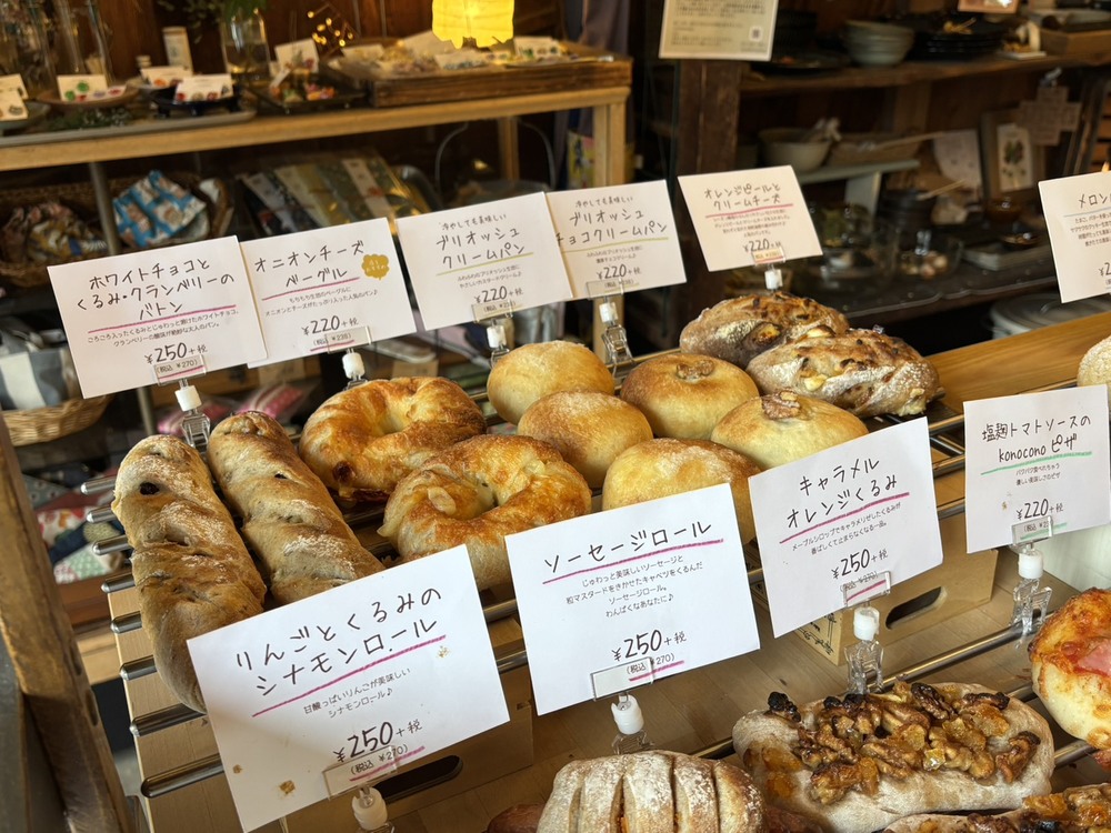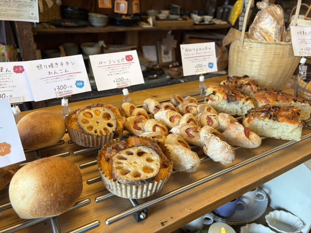 お店の中には、かわいらしい雑貨とおいしそうなパンがずらりと並んでいました。